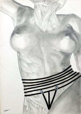 Douée pour les arts plastiques depuis sa jeune enfance, elle s’est engagée récemment dans cette technique de dessins traités à la mine de plomb et souvent agrémentés d’accessoires métalliques, de cuir ou de tissus.